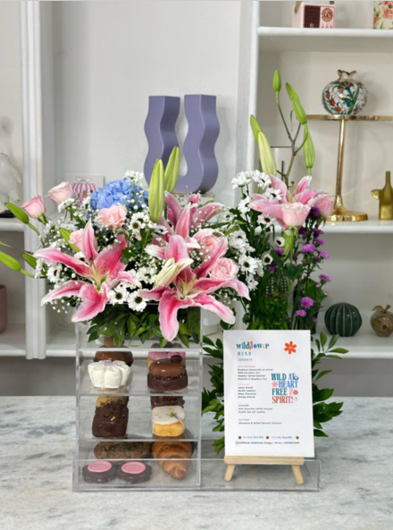 "A wildflower signature hamper comprising of : A tin of 5 salted caramel shortbread, Box...