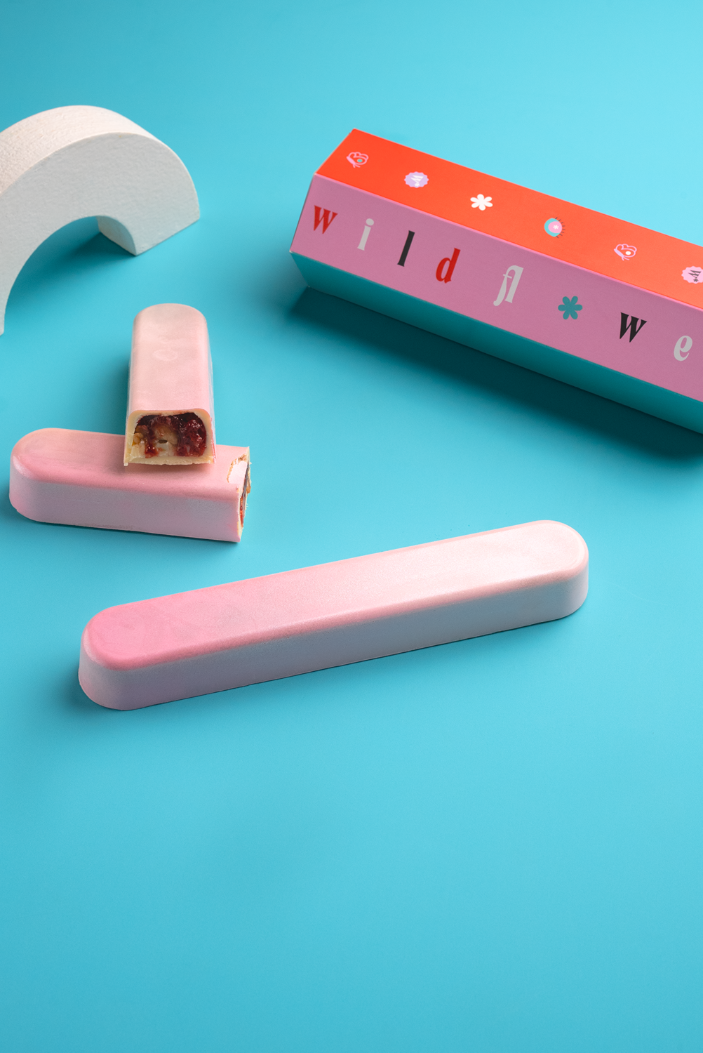 "Indulge in Wildflower's strawberry smoothie bar—a yogurt white chocolate shell filled with yogurt ganache, strawberry compote, and housemade granola"